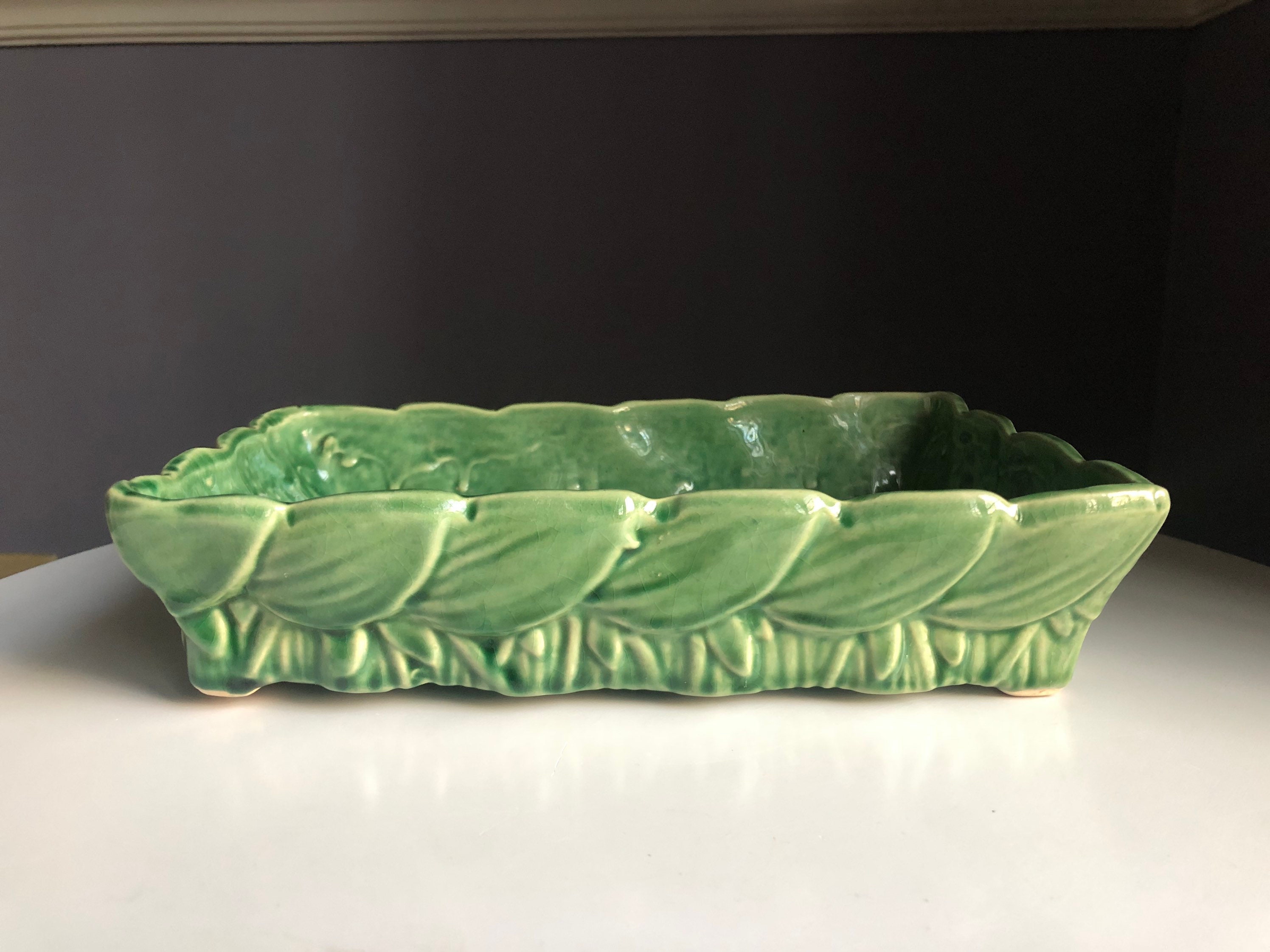 Vintage Mccoy Mid Century Modern Green Bamboo Planter 0374 6 5 034 Super Glossy Ebay