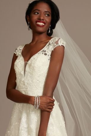 As Is Cap Sleeve 3d Floral Lace Plus Wedding Dress David S Bridal